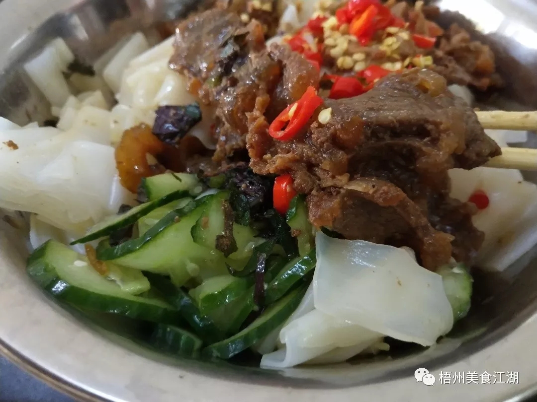 但是,吃貨是不會就此罷休的。幾天后,食俠終于吃到了這里的涼拌岑溪粉。牛展咸香又彈牙,腌黃瓜酸甜又爽脆,番茄熬的咸酸汁偏酸,卻很好地中和了各種味道,令岑溪粉更加清爽入味。