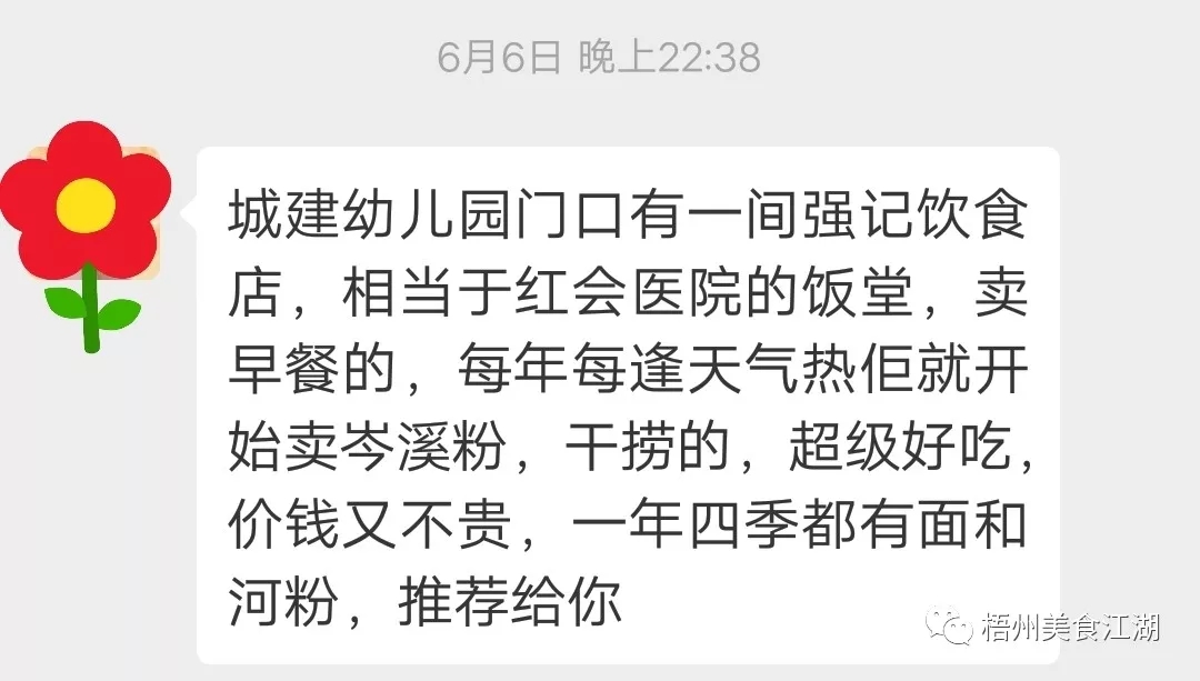上一次食俠說過,夏天一到,我就特別害怕吃油膩的東西,有位粉絲知道后,十分貼心地向我推薦了一家老店,說他們家有一款夏天才做的清爽美食——涼拌岑溪粉。那天晚上,哥我正處于沒吃夜宵的八級饑餓狀態,看到這條信息,還是強忍住夜宵的誘惑,決定第二天探訪此店。
