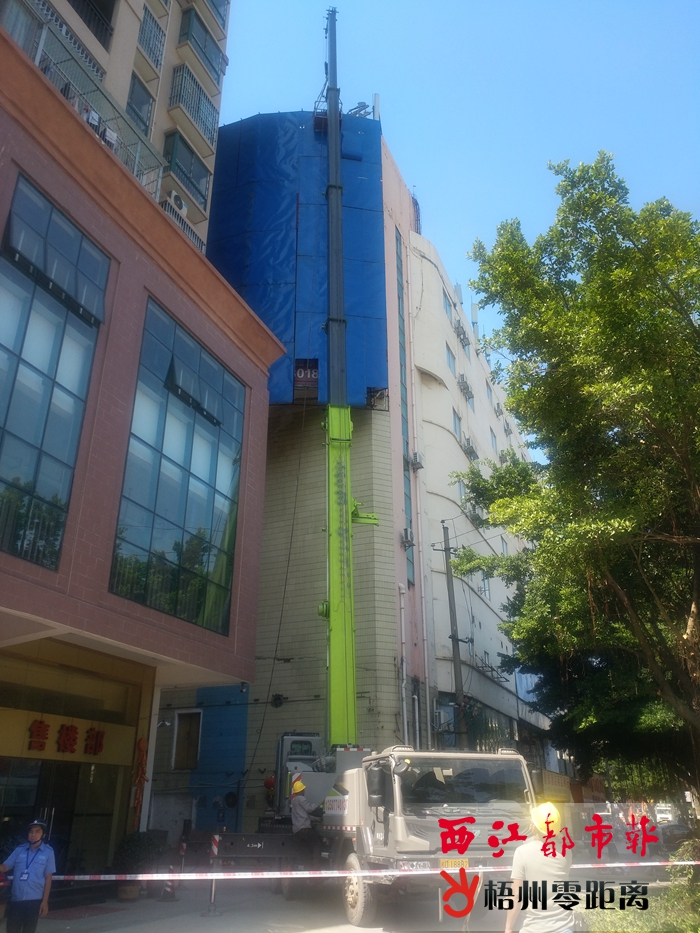 據群眾反映,在新興二路兩廣批發市場九洲大酒店附近,一塊用藍色鐵皮拼湊成的大型廣告牌長期懸掛在沿街一棟樓房的外墻上,廣告牌部分區域的鐵皮已經脫落,露出了內部的鐵架。當天,到場的工作人員對廣告牌周邊進行排查,確保安全后,安排工人搭乘吊車的機械臂到達廣告牌的頂部,進行分割拆除。 梧州市城市管理執法支隊長洲執法大隊大隊長鄧國平介紹,該處戶外廣告牌面積近300平方米,最高懸掛點離地面約50米。鄧國平說:“該廣告牌的部分鐵皮和鐵架已經生銹,亟待拆除。今年3月,廣告牌上的幾塊鐵皮還突然掉落,所幸沒有造成人員傷亡。”由于廣告牌面積大且位于樓房外墻高空,存在一定的施工難度,因此本次拆除工作預計需要兩天時間施工。隨著臺風影響季節臨近,長洲區將繼續組織有關部門,對戶外廣告牌懸掛加強管理及整治。 |