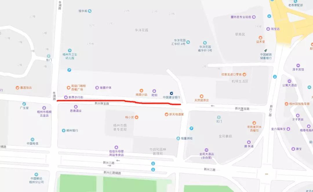 即將搬遷的新界步行街位置示意圖,圖中紅線為新界步行街。