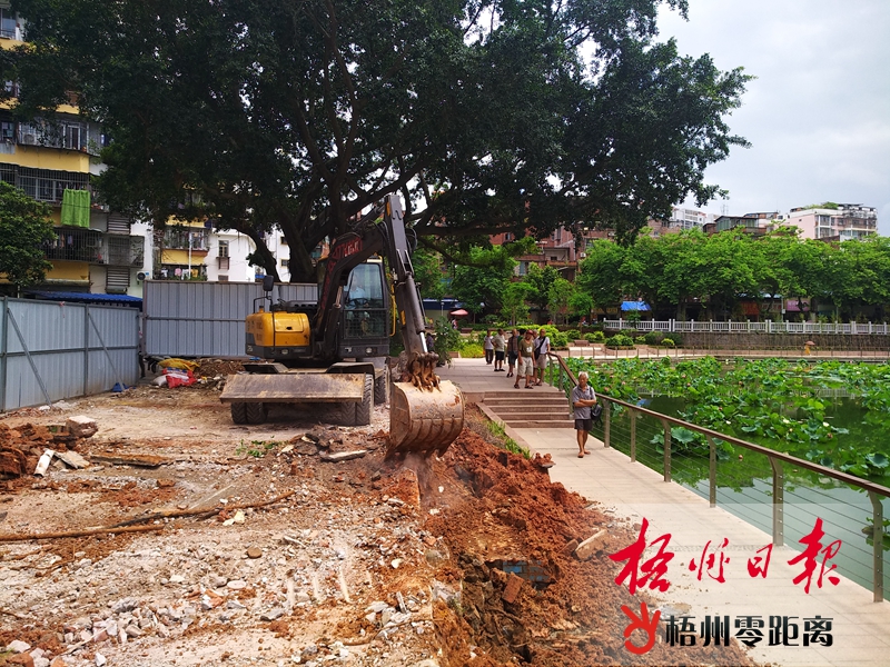 6月18日,在潘塘公園荷花池西側,施工機械正在平整地塊。