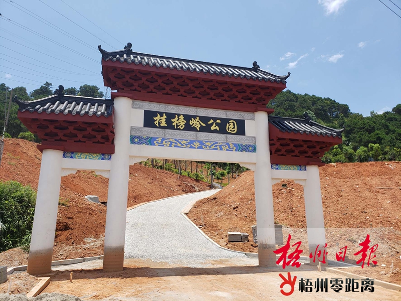 近日,藤縣掛榜嶺公園大門完工。據悉,藤縣掛榜嶺公園項目規劃總投資3000多萬元,面積26.9萬平方米,建設內容包括道路、路燈、綠化、景觀設施等。 李偉明 攝