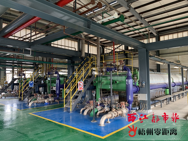 位于萬秀區(qū)塘源片區(qū)的梧州市聯(lián)溢化工有限公司燒堿生產(chǎn)車間的離子膜電解槽生產(chǎn)線采用了當(dāng)下國內(nèi)先進技術(shù),年產(chǎn)離子膜燒堿達7.5萬噸(攝于6月21日)。