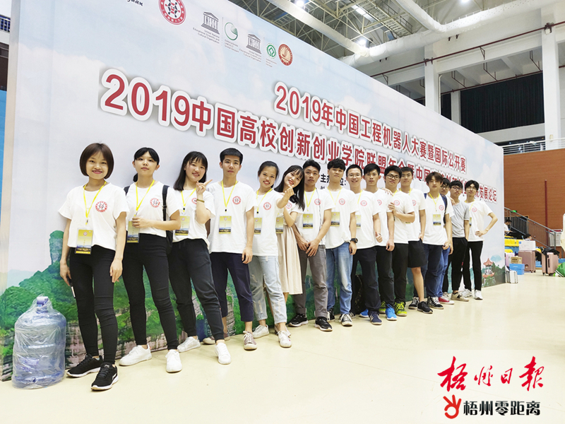 文秋蓮 趙宇龍 文/攝 音樂響起,機器人已準備就緒,它微微仰起頭,緊接著開始扭腰,擺動身子,隨著音樂的節拍擺動,歡快的節奏下,機器人頻頻點頭、搖手,動作搭配與音樂節奏配合完美。這是梧州學院學生參加2019年中國工程機器人大賽暨國際公開賽的一幕。