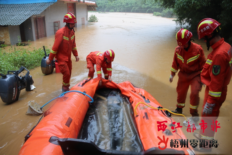 消防救援人員使用沖鋒舟前往救援。(梧州市消防救援支隊供圖)