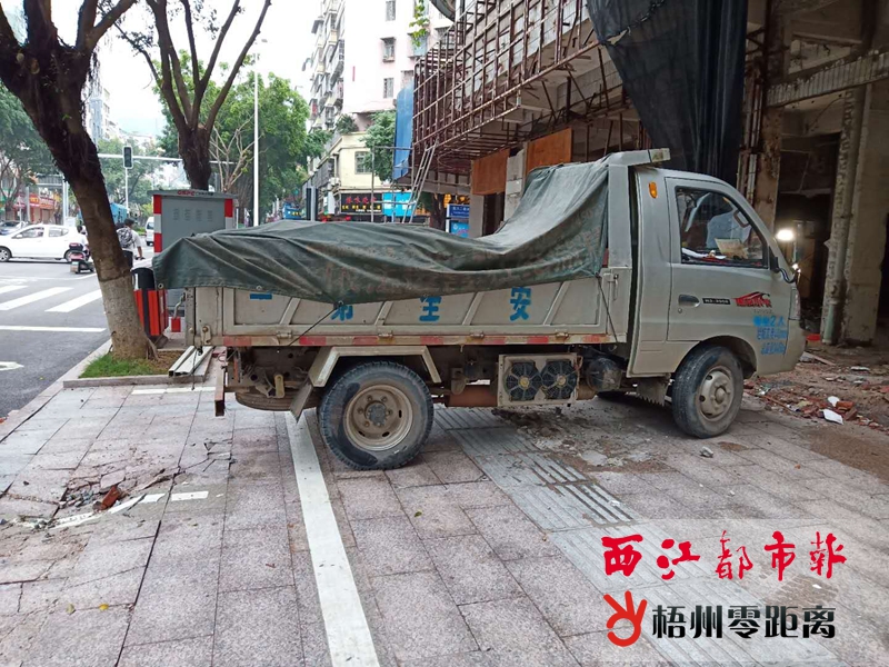 梧州零距離網-西江都市報訊(記者 蒙敏瑩 通訊員 鄧國平 黃超)6月25日上午,長洲街長團隊工作人員在對新興二路進行巡查時發現,有施工車輛開上中國建設銀行梧州新興二路支行對出人行道,導致路面出現嚴重損壞。對此,梧州市長洲區城市管理執法大隊對施工負責人進行立案處理,施工負責人或將面臨罰款2萬元的處罰。