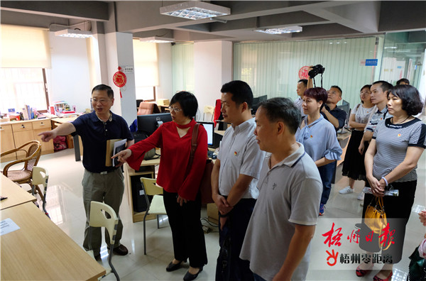 梧州零距離-梧州日?qǐng)?bào)訊 (記者 陳素雅)6月27日,梧州日?qǐng)?bào)社黨委組織西江都市報(bào)支部黨員代表一行十多人,到廣東省肇慶市西江日?qǐng)?bào)社開展學(xué)習(xí)交流活動(dòng),就黨建共建、媒體融合發(fā)展等內(nèi)容深入交流經(jīng)驗(yàn)。