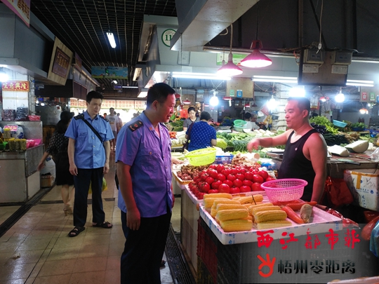 大塘市場監督管理所所長徐文安在大力推進市場規范管理的同時,也因為在市場整治中創新思路、因事制宜,贏得了經營者們的認可 “市場越來越有序,我也越干越起勁” “今天你的生意怎么樣?” “市場的環境好了,居民更愿意走進市場買菜,我們做起生意來也更舒適了。” 這是6月28日上午,梧州市市場監督管理局長洲區支部書記、大塘市場監督管理所(執法大隊)所長徐文安在大塘市場巡查時,與蔬菜經營戶鄧先生的一番對話。 今年4月,徐文安到大塘市場監督管理所任所長,在這兩個多月的時間里,巡查市場、街道幾乎成了他每天的“功課”。來來往往之間,徐文安成為大塘市場經營戶眼中的“熟面孔”,但是他的管理工作能獲得經營戶們的認可,還要從一個多月前說起。