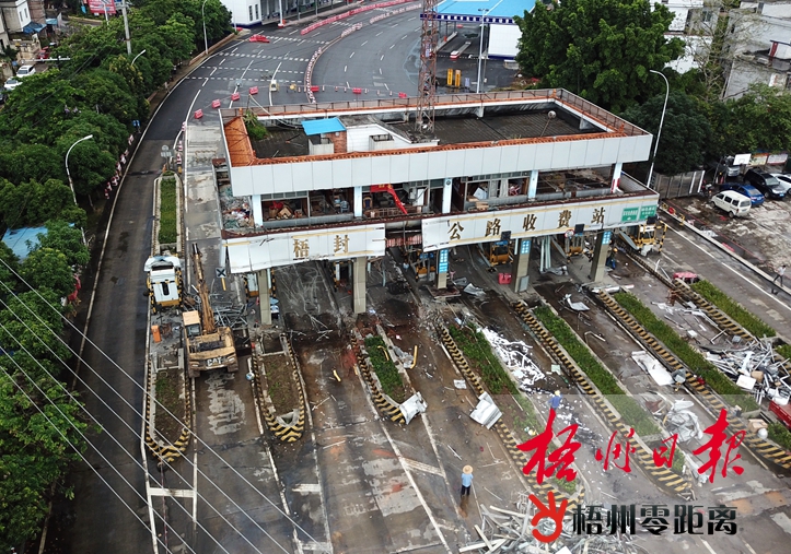 2019年6月20日下午,施工機(jī)械正式拆除梧封一級(jí)公路收費(fèi)站。郭方明 攝