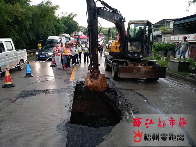 7月3日,蒼梧公路管理局接報后,趕往梨埠鎮涵洞坍塌處,開展搶修。 通訊員 徐永強 攝