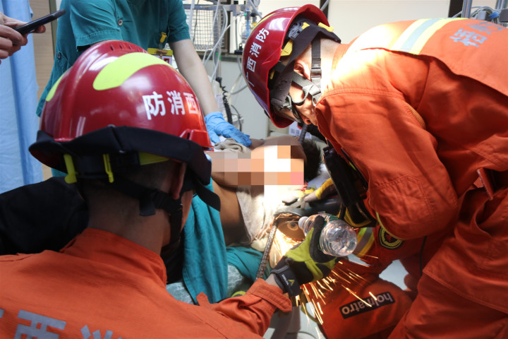 救援人員到場后,先對受傷被困男子進行情緒安撫,并由120醫療救護人員對男子傷口進行緊急處理,在確保其不受二次傷害的前提下,救援人員利用破拆工具對穿臂的鋼筋進行上下切割。8時15分,救援人員成功將鋼筋切斷,將受傷男子救出,由現場醫務人員對男子進行后續治療處理。將受傷男子送醫后,救援人員再配合醫務人員,在醫院進行二次切割,最終成功將鋼筋從受傷男子身上分離。由于救治及時,受傷男子目前無生命危險。