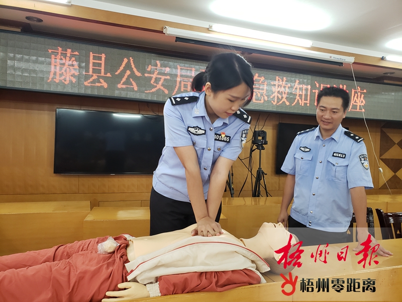 近日,藤縣公安民警在認真學習應急救護知識與技能。