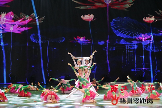 “這次在梧州會演的節目都很棒,讓我大開眼界。”桂林市群眾藝術館星藝合唱團的成員林芳表示,此次參加會演,她感到群眾文藝活動的層次越來越豐富,梧州群眾參與的熱情很高,氛圍特別好。 當天晚上,一支融入了梧州粵劇元素的作品《西江·粵》拉開了舞蹈類節目會演的序幕。在貴港市文學藝術界聯合會帶來的舞蹈節目《荷城荷韻》中,60多名小演員則以動感的舞姿、形象的肢體語言,展示了貴港市花荷花的美態,帶給觀眾美的享受。