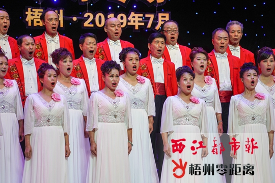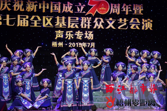梧州零距離網-西江都市報訊(記者 陳雨燕 實習生 莫惟珺)7月9日,慶祝新中國成立70周年暨第七屆全區基層群眾文藝會演正式拉開帷幕。其中,聲樂類、舞蹈類節目會演,分別在梧州市文化大廈劇場、梧州市文化展覽中心劇場舉行。