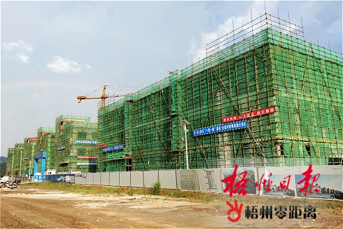 該項目計劃建設52棟標準廠房,一棟科研綜合樓,三個生產廠房,總建筑面積約21萬平方米。目前,已建設了約八萬平方米,封頂五棟廠房,引進了梧州龍山酒業有限公司、梧州樂哈哈食品工業有限公司、廣東生和堂健康食品股份有限公司等食品生產企業。