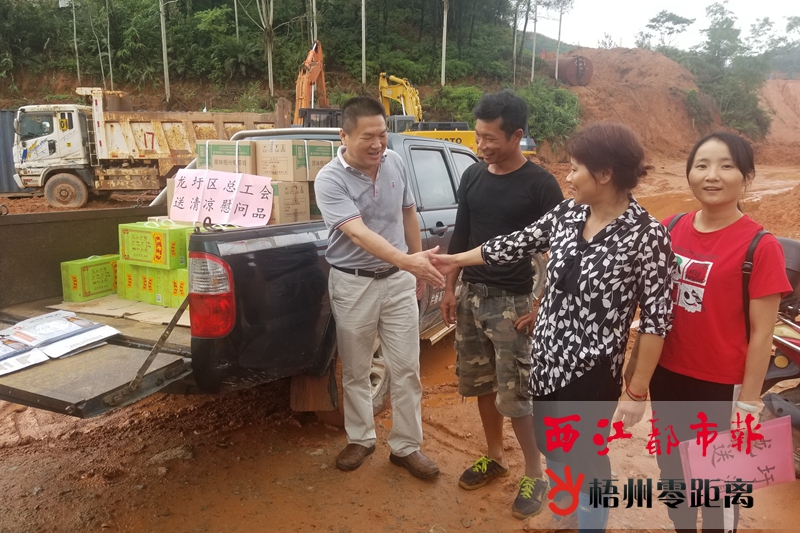 7月9日至10日,龍圩區(qū)總工會開展“送清涼”活動,向梧州工業(yè)新城進(jìn)城道路工程項(xiàng)目部等8個單位企業(yè),送上涼茶、礦泉水、毛巾、 龜苓膏等慰問物資,價值約2.5萬元。黎賢明 攝