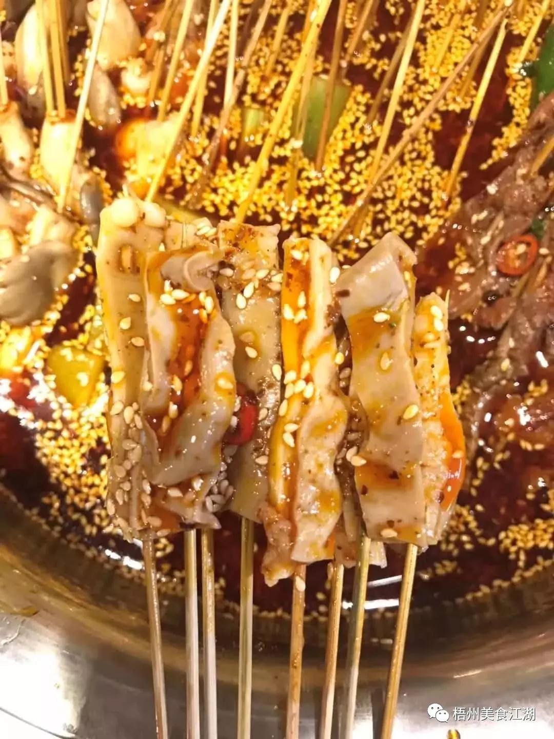 吃這里的麻辣串串,就一個字:鮮!每種串串都特別入味,而且各有各的口感。至于麻辣的程度,也很符合大多數梧州人的口味,花椒量恰到好處,剛好令嘴唇舌頭有淡淡的麻痹感,讓咸辣味“乘虛而入”,攻克食客們的味蕾。
