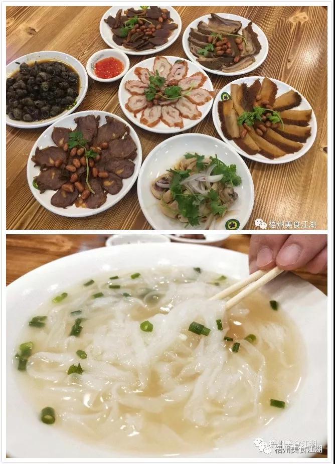 這里的宵夜是豬骨湯粉和一碟碟的小菜,牛展有嚼勁,鴨腸很爽脆,伴著河粉吃到嘴里,絲絲滑滑,薄薄嫩嫩,“吸溜”一聲,吸進了嘴里,口感一級棒。
