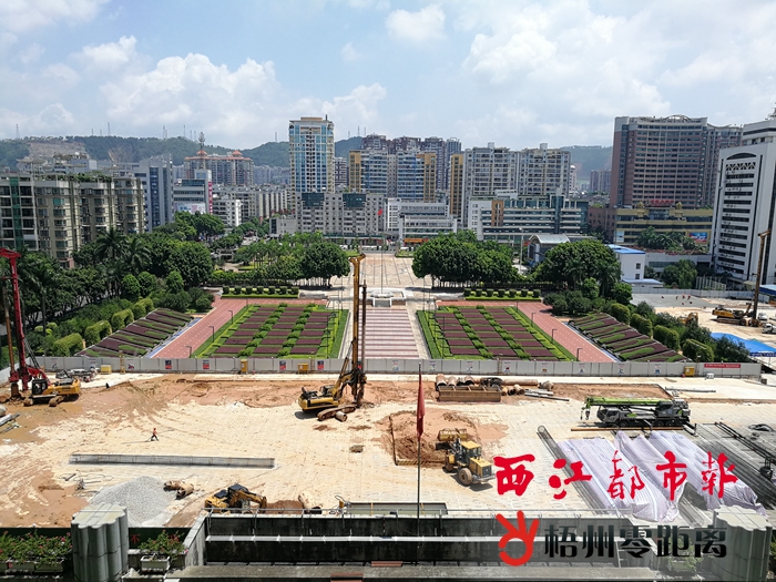 7月18日,梧州市文化中心地下停車場工程現場,地下樁基礎建設正在進行中。