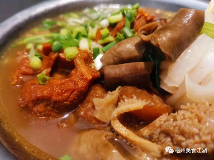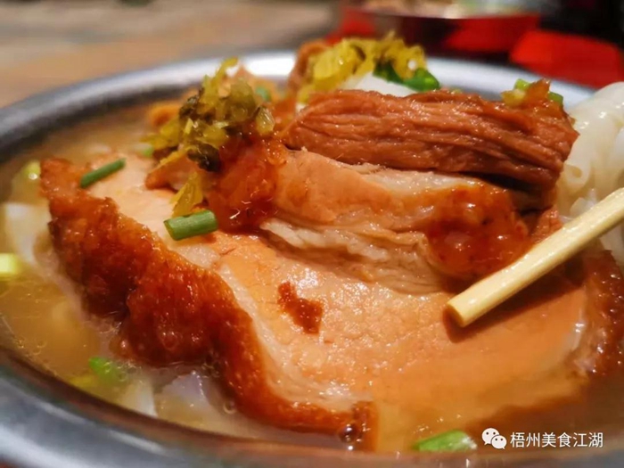 要說較能承載梧州人情懷的食品是什么?大概就是河粉了! 沒錯,我們今天聊的就是河粉。 梧州美食江湖微信公眾號推了那么多期關于河粉的介紹,后臺早有粉絲調侃:“梧州美食江湖都可以改名梧州河粉江湖了。” 但有什么辦法呢,誰讓我們對梧州河粉如此執著,早餐可以吃扣肉粉,午餐再來一碗牛腩粉,晚餐點份燒鴨粉,宵夜時間再來碗腐竹粉。