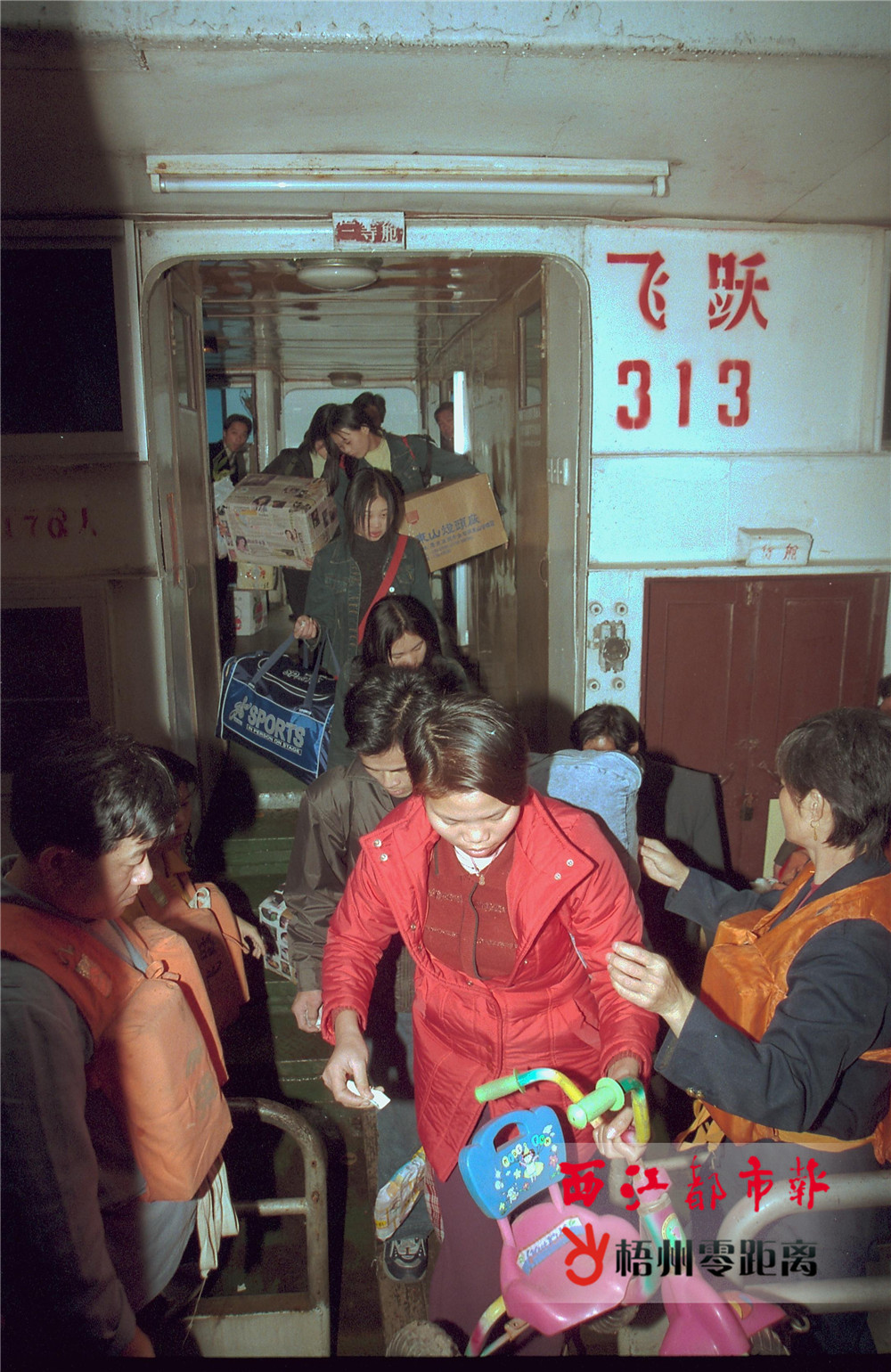 在水上客運(yùn)“唱主調(diào)”的年代,每年春節(jié)都是碼頭上、客船上,一年中最熱鬧繁忙的時刻。圖為乘客排隊(duì)走出“飛躍號”客船。孟亞西 攝 而梧州所轄縣城的群眾大多是通過“水路加陸路”的方式來往兩廣。原梧州汽車總站位于現(xiàn)在地王廣場項(xiàng)目的所在地,與客運(yùn)碼頭相距不足500米。唐堅(jiān)從1990年開始在車站跑長途客車,那時候,車站每天僅有1班客車前往廣州。唐堅(jiān)說:“當(dāng)時國道321線還沒有建成,客車只能走二級、三級公路,彎多路窄、路途顛簸。每次開往廣州都需要超過10個小時,大部分旅客還是選擇搭乘平穩(wěn)寬敞的輪船。” 這種情況在1995年開始發(fā)生轉(zhuǎn)變。1995年,過境梧州的高速公路、梧州長洲島機(jī)場相繼開通開航。有車有好路,公路客運(yùn)的優(yōu)勢顯現(xiàn)出來:梧州至廣東的車程時間縮短至6個小時,車站每天發(fā)往廣州的客車突增至30班。據(jù)《廣西年鑒(1996)》記載,1995年,梧州長洲島機(jī)場開辟4條航線,分別通往廣州、深圳、南寧和桂林。