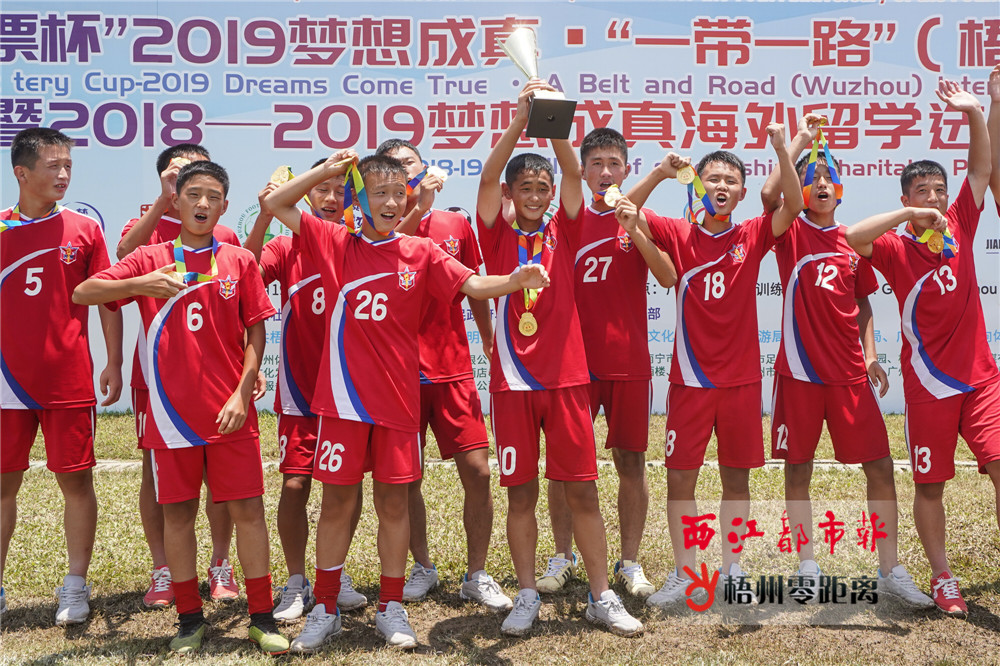 在U16組別的決賽中,朝鮮隊戰勝印度尼西亞隊,隊員們捧起冠軍獎杯時露出靦腆的笑容。 U16組別是本次比賽中隊員年齡最大的組別,比賽水平相對更高,吸引了國內各地,以及朝鮮、印度尼西亞、俄羅斯等國家的足球隊伍參加。朝鮮隊與印度尼西亞隊實力強悍,均以不敗戰績在決賽碰頭,對抗尤為激烈。 開場幾分鐘,印度尼西亞隊就打破朝鮮隊開賽以來龍門不破的“金身”,率先取得一粒進球。朝鮮隊也不甘示弱,隨后連續取得兩粒進球,贏回優勢。臨近比賽結束,印度尼西亞隊獲得關鍵的點球機會。負責主罰點球的隊員在射門時成功迷惑對方守門員的撲救方向,但球最終還是以細小的誤差射到門框上。眼看勝利無望,印度尼西亞隊的隊員們淚灑賽場,相擁而泣。