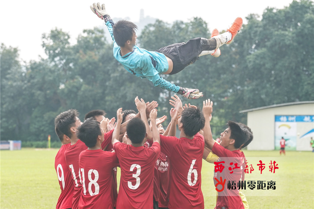 廣西體育局西荷青訓隊隊員在贏得點球大戰后,激動地拋起撲出3個點球的守門員。 失敗挫折更能鍛煉堅強意志。頒獎儀式上,收拾心情后的印度尼西亞隊隊員們自豪地披著國旗出席,眾人紛紛拍照留念,剛剛緊張的賽場頓時洋溢著歡樂的氣氛。而一直對比賽抱著嚴肅認真態度的朝鮮隊隊員們,在賽事結束后也一改“冷酷”形象,瞬間恢復少年活潑的天性,還興奮地向記者表達對梧州特色小吃的喜愛之情。
