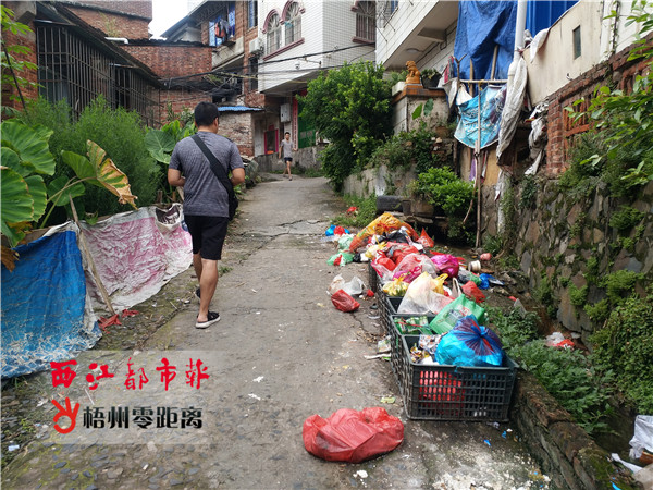 梧州零距離-西江都市報訊(記者 蒙敏瑩)近日,有市民向本報報料熱線致電,反映西環路踏梯山居民區存在垃圾清理不及時的問題。對此,興寧社區居委會方面表示,由于踏梯山地勢問題,保潔員收運垃圾難度較大,希望居民能夠將生活垃圾投放至垃圾收集點,方便保潔員清理。 7月23日上午10時許,記者來到西環路踏梯山走訪,發現在踏梯山二級一段道路的路邊,擺放了六七個塑料筐,筐內和周邊堆放著不少生活垃圾,有些生活垃圾甚至散落在路面上。附近居民說,這些垃圾收集點是自然形成的,在山上還有好幾個收集點。隨后,記者繼續對踏梯山三級、四級等區域進行走訪,發現除了垃圾收集點外,部分居民出入通道上也堆放有一包包生活垃圾。