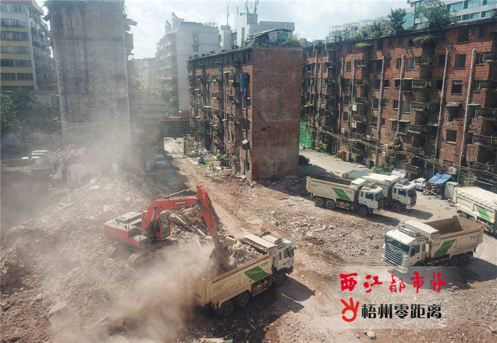 7月25日,萬秀區新興一路片區棚戶區改造工地現場,挖掘機和翻斗車正在裝載磚塊和廢棄物。楊揚 攝 以前,在新興一路、富民三路等路段內,老舊的紅磚房屋連片成區,其內配套設施落后,環境臟亂,與城市的發展顯得格格不入。 “當時和父母一起住在這里。畢竟都二三十年的老房子了,避免不了存在破舊、昏暗等問題,而且蚊蟲特別多。”黃坤恒說,自己和其他居住在老舊房屋的居民一樣,雖然都想改善住房條件,但受困于經濟條件等原因,往往力不從心。然而,隨著棚戶區改造項目將富民三路的許多老房子列入了拆遷類范圍,這些居住在破舊房屋內的街坊們乘著政策的東風,紛紛購置新房或申請了公租房,改善居住條件的愿望終于得以實現。 得益于一批棚戶區改造項目的推進,梧州城區的面貌正在悄然發生改變。除了富民片區棚改項目外,新興一路片區也于今年7月進入房屋全面拆除階段。此外,今年2月,長洲區也啟動了棚戶區改造項目。截至7月24日,長洲區兩龍片區棚改項目已完成簽約458棟,完成搬遷368棟,已拆除337棟。而長洲島棚改(一期)項目也已完成簽約141棟,完成搬遷67棟,拆除53棟。