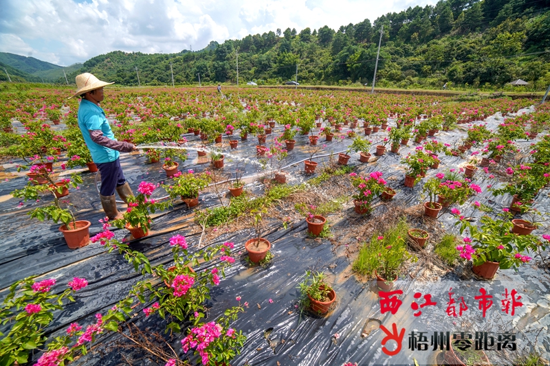目前,寶巾花主題公園、展示廳、寶巾花培育基地等包含在一期工程項目內的多個功能區已經完工投用,園區依靠現有硬件條件培育出的不同品種和一樹多花的寶巾花實現產銷對路,經濟效益積極向好。現階段工作人員主要對園區苗木進行打理,以迎合國慶市場的火熱需求。