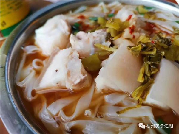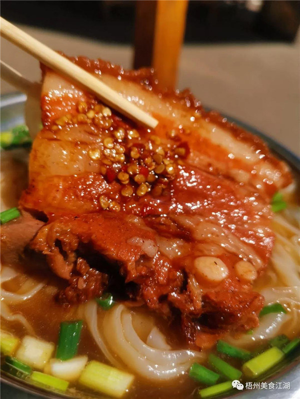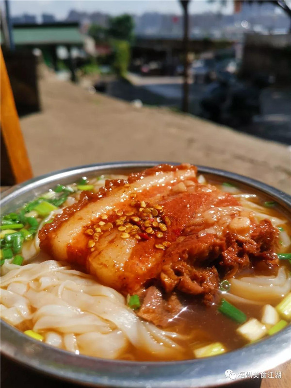 吃貨“一壺菊花茶”:這家店沒有招牌比較難找,河粉的湯底偏甜,選配菜時我看中了扣肉,厚厚的一大塊,感覺是土豬肉,而且外皮軟嫩,非常入味。 地址:長洲區竹灣十組西江汊河橋頭(梧州市強生醫院旁) 時間:6點30分至11點