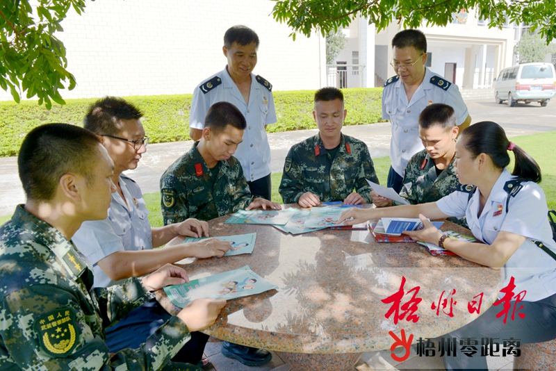 7月30日,在武警岑溪大隊,稅務干部在向武警官兵宣傳講解退役軍人及其家屬創業就業稅收優惠政策。