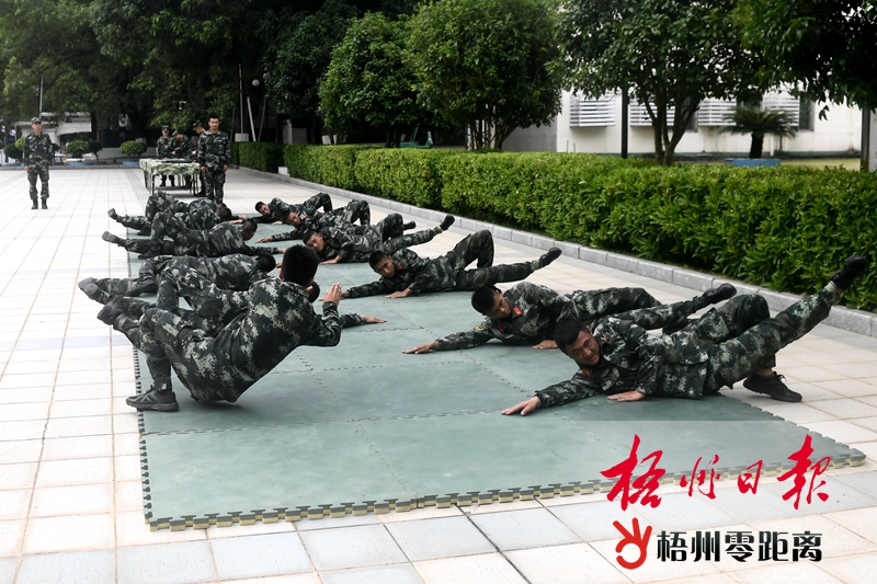 7月30日,在武警梧州支隊,戰士們正在練習戰術動作。雖然前段時間天氣持續高溫,但武警戰士們依然按計劃苦練技能,提高軍事本領。記者 蒙紹松 攝