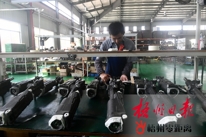 日前,在梧州循環經濟園區華南智能再制造生產車間,技術工人對再制造的小汽車轉向器進行檢測。目前,再制造產業市場發展前景廣闊,該企業積極拓展再制造項目,通過增加產能、改進技術,不斷提高行業競爭力。梧州日報記者 蒙紹松 攝