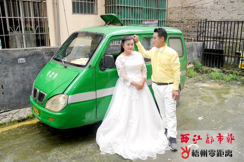 麥金德和梁雪飛以三輪車營運為生。在三輪車旁拍攝婚紗照,就是二人對過往相濡以沫的“小日子”的最好回憶。 照相機發(fā)出“咔嚓咔嚓”的聲音,昔日種種場景也在麥金德腦海中快速閃現(xiàn):開三輪車的日子雖然過得清苦,靠著兩個人的努力,順利將兒女撫養(yǎng)長大了,現(xiàn)在二人還有一個可愛的小外孫。“結(jié)婚時我們還是青春年少,現(xiàn)在已經(jīng)是兒孫繞膝的老夫妻了。”麥金德笑著說道。