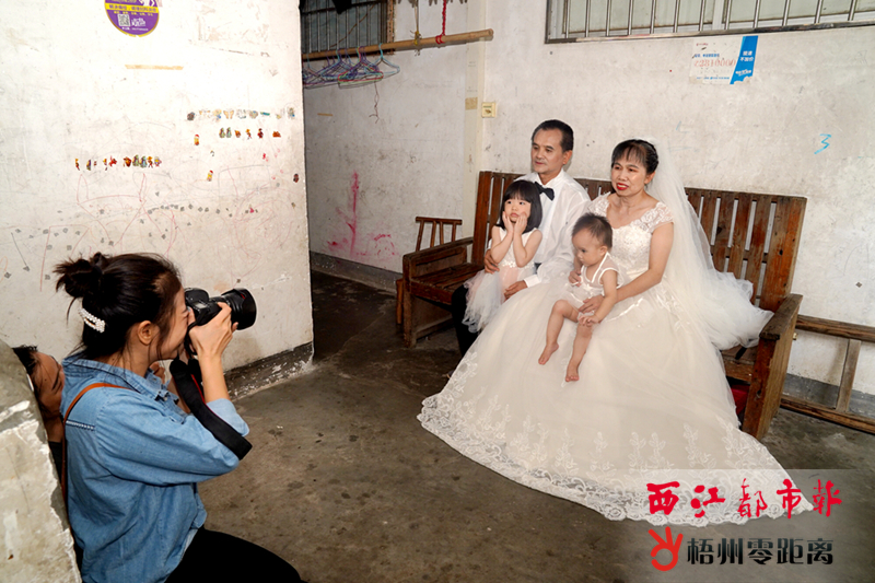這是一場“遲到”的集體婚禮,但深情的告白已在“柴米油鹽”的日子間細訴。(藤縣太平網(wǎng)供圖) 七夕佳節(jié)早已與愛情、浪漫結(jié)緣。在這“中國情人節(jié)”即將到來之際,藤縣的“雙囍婚禮工作室”等愛心商家,在當?shù)靥暨x了7對婚齡滿20周年以上的夫妻,為他們拍攝婚紗照,圓婚禮夢。 已經(jīng)結(jié)婚38年的魏天寶和李芝蘭都是水上人家的兒女。二人最初相識時,因同樣喜愛唱水上民歌,很快便走到了一起。1981年,魏天寶和李芝蘭正式結(jié)婚,并拍了一張黑白的合影照片——身著襯衫的兩人依靠在一起并露出了靦腆的笑容。