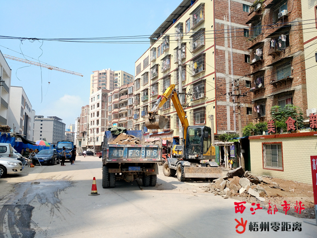 梧州零距離網-西江都市報訊(記者 蒙敏瑩 通訊員 吳秋瑩)為了在9月秋季學期開學前抓緊完成鳳翔小學周邊環境整治及相應配套設施建設,近期,長洲區組織長洲區建設局、區城市管理執法大隊、興龍辦事處等部門開展環境整治工作,對梧州市鳳翔小學周邊占道鐵棚商鋪進行拆除。
