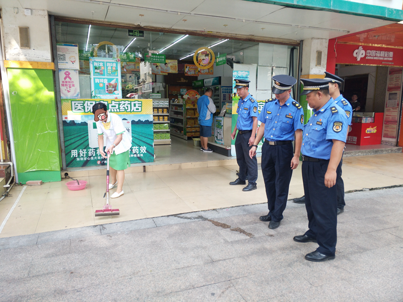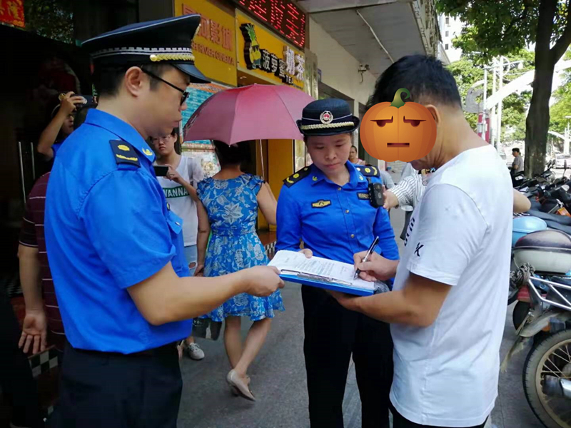 執法人員向商鋪負責人發出責令整改通知書。 另一邊,在新興二路,長洲區城管執法大隊聯合大塘街道辦事處走訪臨街商(住)戶,對臨街空調冷卻水隨意外排情況進行整治。