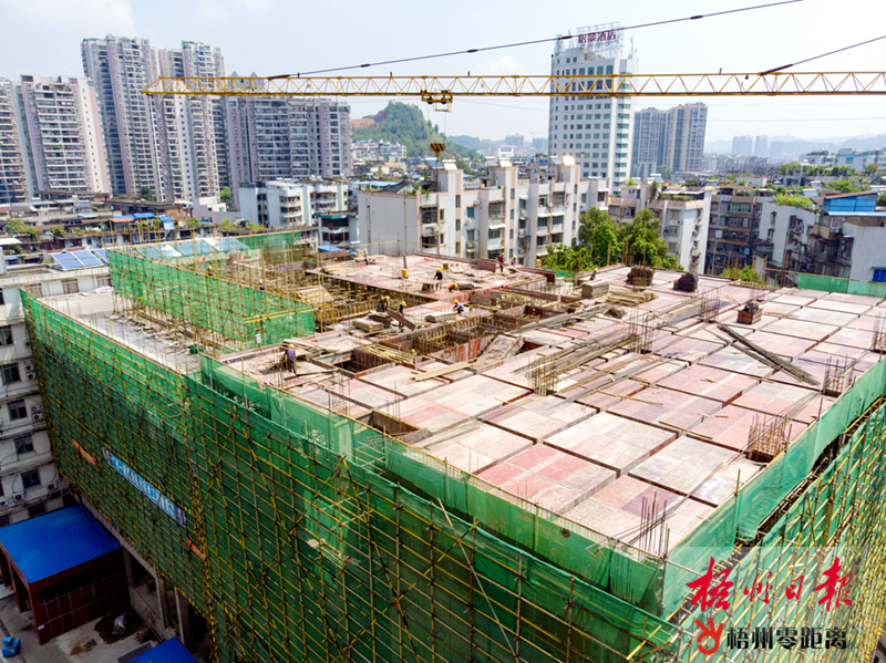 8月5日,梧州市婦幼保健院業務樓擴建項目在建主體建筑的樓高已與周邊樓宇持平,施工隊伍正在持續推進主體框架建設。