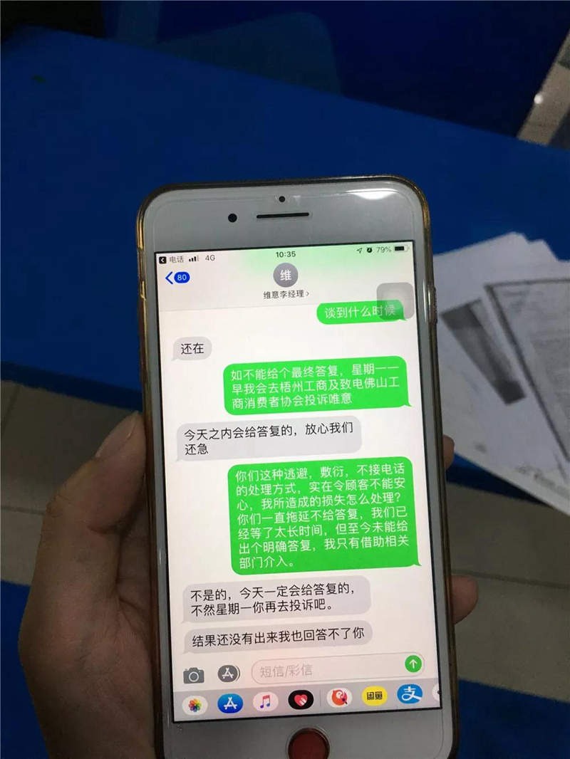 陳女士提供的訂單 “我一直認(rèn)為‘維意定制’是一個大品牌,還是一家上市公司,而且梧州門店當(dāng)時提供的優(yōu)惠力度十分大,金額從6萬多元降到3萬多元,他們提供的材料樣板也挺好,所以就選擇了在這家店定制家具,誰知道現(xiàn)在竟攤上了這事。”陳女士后悔地說,因?yàn)榧揖叩膯栴},新居入伙的日子不得不一再延遲。 陳女士還說,到了約定交付家具的日期,她曾向梧州維意定制門店催促,但該店經(jīng)營者辯解稱家具在運(yùn)輸倉儲過程中遭到浸泡,需要重新制作,要求她再等待一段時間,并承諾交貨時向她贈送一臺凈水器作為補(bǔ)償。但最終陳女士還是沒有等來定制的家具,也沒得到任何補(bǔ)償。 “7月10日后,我多次到梧州維意定制門店催促交貨,最近一次是7月29日,當(dāng)時門店里沒有一名員工在場,只有老板娘一人,老板娘還解釋員工們放假去燒烤了,后來她還承諾會盡快把家具交付給我。”陳女士說,自己當(dāng)時就感覺到這家店有點(diǎn)不對勁了。 現(xiàn)場另一名女性消費(fèi)者說,她是在去年9月聯(lián)系維意定制官網(wǎng)的,當(dāng)時維意定制官網(wǎng)讓梧州維意定制門店聯(lián)系了她。后來,她向梧州維意定制門店訂購了衣柜、桌子等一批家具,先預(yù)付定金5萬元,再付清尾款2萬元,并約定今年5月19日交貨。然而,至今她只收到了不到四分之一的家具,而且還是一些零部件,未能完成安裝。