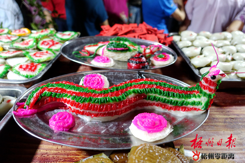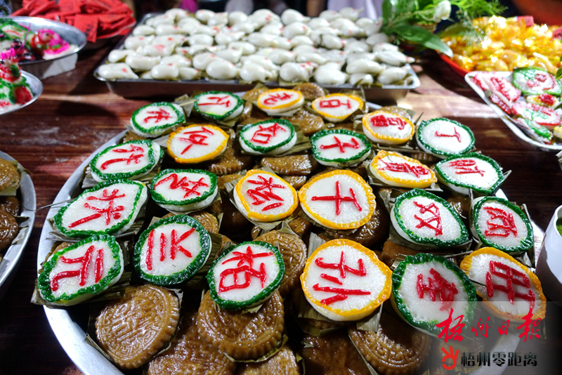 藤縣太平鎮婦女們自己制作的帶著美好寓意的彩印糍粑。霍金鈴 攝