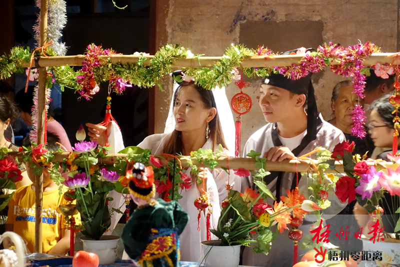 古裝打扮的娃娃好漂亮。 黃自芬 攝 參與活動的藤縣太平鎮群眾吳冬蘭表示,太平鎮乞巧節是多年沿襲下來的傳統節日,是非物質文化遺產。老一輩的人通過這個契機教年輕人制作手工藝品,大家在一起度過歡樂時光,希望這個節日一直沿襲下去。吳冬蘭說,在太平鎮,乞巧節比春節還要熱鬧,各鄉鎮的人都趕來這里參加這場盛會。 人們向織女祈禱完后,便開始載歌載舞慶祝乞巧節。群眾的慶祝活動以唱山歌為主,也有唱牛歌調和采茶調的,重頭戲當然是應景的“牛郎織女鵲橋相會”片段,悠長的唱腔、熟練的唱詞,贏得觀眾陣陣掌聲。 太平鎮文化站站長吳瑞文說,本次太平鎮的民俗文化活動分四個點舉辦,分別在德勝街、文武二帝廟、上元街、正東街,其中德勝街和文武二帝廟是主場。活動以婦女為代表,她們提前準備好的自己制作的傳統工藝品和美食,用特殊的藝術形式展現給群眾。(通訊員 霍金鈴/文) |