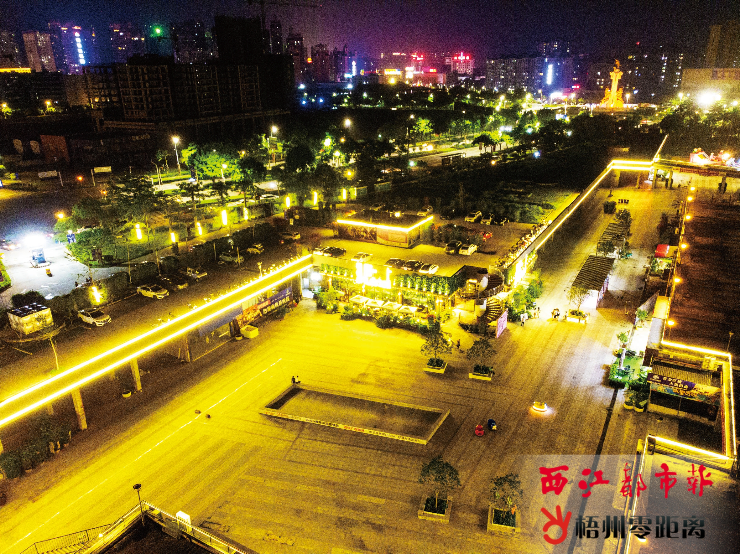 8月6日,玫瑰天地酒吧街的夜景燈光點亮了玫瑰湖公園東側。