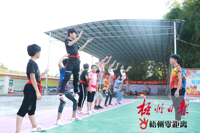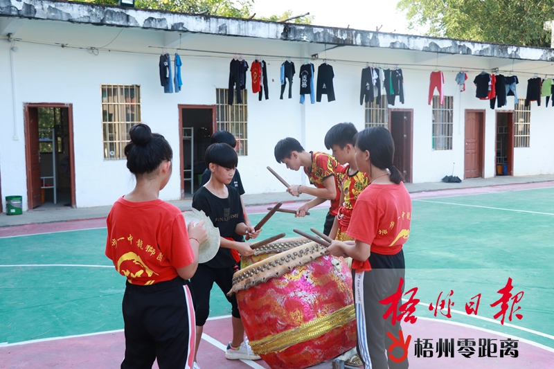 在簡單的開班儀式后,學員們在領班教練的帶領下,來到藤縣塘步鎮禤洲島藤縣獅舞技藝禤洲傳承基地,準備進行暑期舞獅技藝培訓。