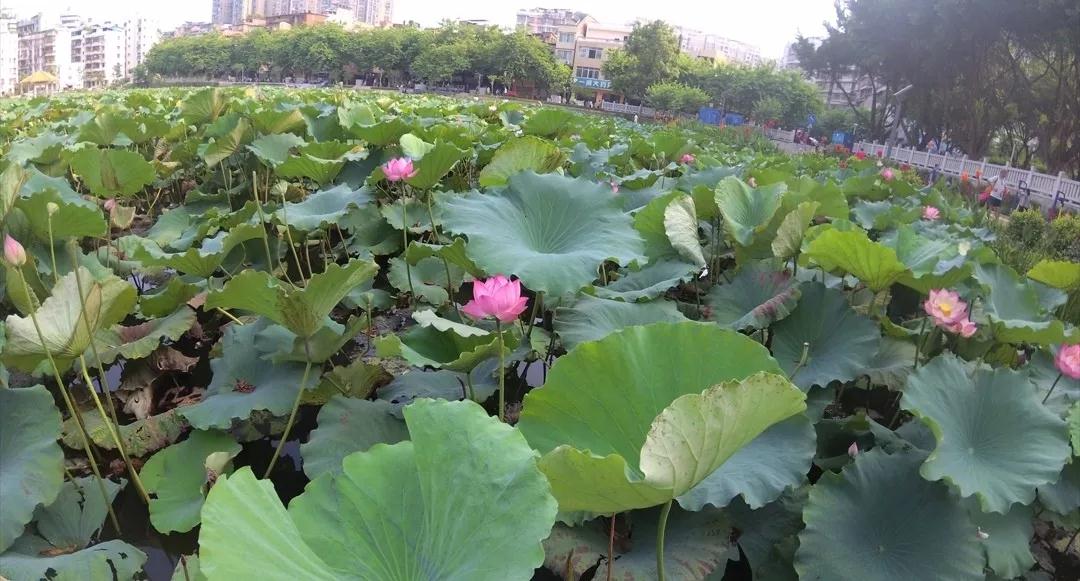 潘塘公園內荷花盛放,引得眾多游人前往觀賞。 走進潘塘公園,“接天蓮葉無窮碧,映日荷花別樣紅”的美景映入眼簾。荷塘中,朵朵或粉或白的荷花在迎風搖曳,引得游人紛紛舉起手機、相機拍攝。荷塘邊,居民們組隊開展各類健身運動,踢毽子、跳舞、健步走……休閑自在。