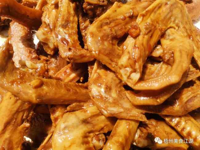 彩記鴨腳翼 現在,彩記已經不用柴火來燒鴨子,而改用炭火來烤。一只鴨子,必須在調味料中泡幾個小時的“澡”,才能進入烤爐里面進行“桑拿”。