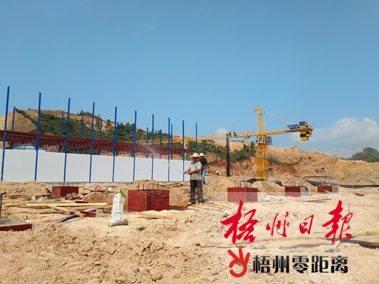 梧州零距離網-梧州日報訊(記者 蒙敏瑩 通訊員 史秋蘭)8月14日,烈日當空,熱浪滾滾,連日的高溫下,市商貿物流園區內的梧州市紅星美凱龍國際家居博覽中心建設也不斷升溫,工程車輛來回穿梭,切割機械飛快轉動,工人們頂著烈日為完成澆筑的管樁澆水養護,建設現場一派熱火朝天。