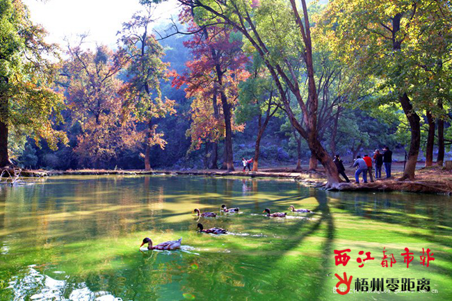 還在睡夢(mèng)中的我,仿佛聽(tīng)到楓葉林中黃鶯那婉轉(zhuǎn)悅耳的歌聲,我睜開(kāi)眼睛。哦!太陽(yáng)已經(jīng)透過(guò)窗戶(hù),照到床上來(lái)了!我趕緊打開(kāi)手機(jī),朋友們的信息幾乎爆滿:“太陽(yáng)出來(lái)了!到周家賞楓葉去!” 從賀州市富川縣富陽(yáng)鎮(zhèn)驅(qū)車(chē)20來(lái)分鐘,穿過(guò)川巖,經(jīng)獅山、黃家,我們來(lái)到仙境般的村落——周家。周家村始建于唐宋年間,與宋代理學(xué)家周敦頤同宗,有百來(lái)戶(hù)人家,至今仍保留著不少明清時(shí)代的建筑,青磚瓦黛,綠樹(shù)掩映,古樸又靜謐。一條小路蜿蜒北上,不足一公里處,便是村后的楓樹(shù)林。楓樹(shù)或疏或密地散落在一泓泓池水之間,走進(jìn)楓林,宛如走進(jìn)一幅國(guó)畫(huà)長(zhǎng)卷。左邊的青龍山連綿起伏,山石嶙峋,清秀如洗。山下一潭池水如鏡,映著青山、藍(lán)天和白云,青龍山更似蛟龍騰云。而右邊的白虎山高大巍峨,險(xiǎn)峻雄奇。多希望自己是個(gè)丹青妙手,大斧劈皴,雨點(diǎn)渲染,鉤、皴、染、點(diǎn),讓世人都來(lái)領(lǐng)略這青龍白虎的雄姿。 我們來(lái)到楓林南端,這里的美景令人遐想連篇,如癡如醉。這里有兩口池塘,相距不過(guò)數(shù)米,遠(yuǎn)看楓林,狀似一只美麗的蝴蝶,兩口池塘是它透明的蟬翼,岸上楓樹(shù)是它五彩的身體。池塘邊,棵棵楓樹(shù)亭亭玉立,像美麗的少女,季節(jié)的魔棒一揮,紛紛讓她們有了發(fā)辮,有了五彩花裙。她們舒展身姿,隨風(fēng)搖曳,翩翩起舞。發(fā)辮中、花裙里飄落出一只只彩蝶,飛到池里,飛到岸上,飛到天空。明凈的池面這時(shí)候成了個(gè)大舞臺(tái),天空云朵是舞臺(tái)絢麗的燈光、布景,彩蝶與少女在舞臺(tái)上旋轉(zhuǎn)、跳躍、嬉戲。好一幅《霜染楓林》!這是一幅流動(dòng)的畫(huà),一首抽象的詩(shī)!在這里,你完全可以放松自己,任思緒自由馳騁…… “碧云天,黃葉地,西風(fēng)緊,北雁南飛。曉來(lái)誰(shuí)染霜林醉,總是離人淚”,才子佳人們的閨中怨早已成為過(guò)去。此情此景,只待讓人閉上雙眼,去呼吸這令人陶醉的新鮮空氣,張開(kāi)雙臂,去擁抱這如詩(shī)如畫(huà)的楓林。 周家村的孩子們一早把羊群趕到山上,又從家里趕來(lái)一群白鵝,白鵝下水了,撲騰著翅膀,游來(lái)游去,快樂(lè)嬉戲。孩子們便在山腳下?lián)煨?shù)枝、柴火,挖個(gè)紅薯窯,蓋上土,點(diǎn)上柴火,再使勁地扇,讓炭火燃起來(lái),巴巴地等待紅薯出窯。啊!香噴噴、甜蜜蜜…… 周家楓林,是孩子們的樂(lè)園,也是游人、書(shū)畫(huà)、攝影家的天堂。游人們?cè)诔靥吝叀?shù)林里拍照,目光流轉(zhuǎn),顧盼生輝,留下一個(gè)個(gè)動(dòng)人身影。書(shū)畫(huà)家們以山石或楓林入畫(huà),充滿田園情趣。而在攝影家的鏡頭里,一片葉子、一塊巖石、一群羊群都充滿了魅力。隨處可見(jiàn)的綠葉和點(diǎn)綴的紅云,充滿著處子般的恬靜、熱烈、充滿生機(jī)。這是一曲生命的贊歌!看到它,我心里跳動(dòng)的是命運(yùn)交響的音符,眼前浮現(xiàn)的是國(guó)畫(huà)大師李可染的畫(huà)作。周家楓林,人間仙境! (劉陽(yáng)) |