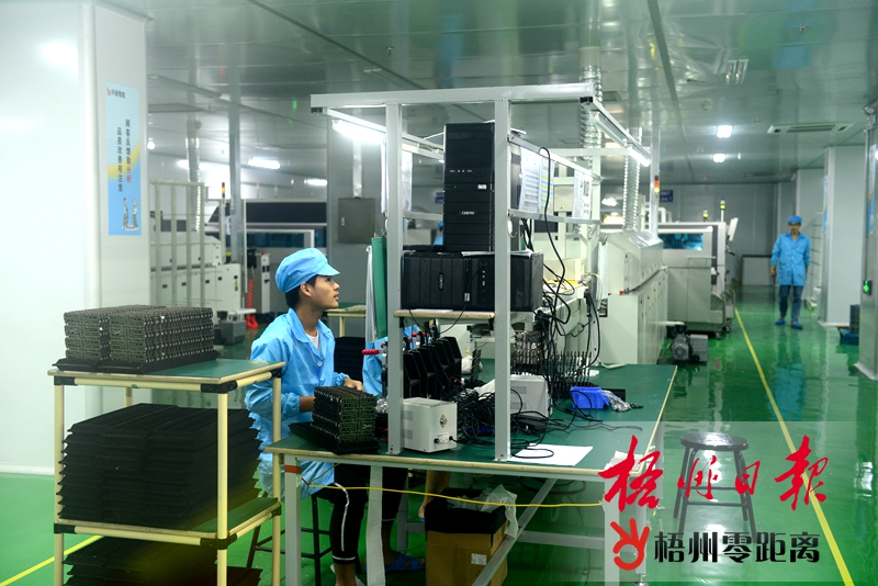 8月16日,在梧州興揚智能科技有限公司,工人在廠房生產智能終端產品。