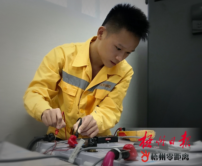 張宇飛對蓄電池進行測試。(被訪者提供)